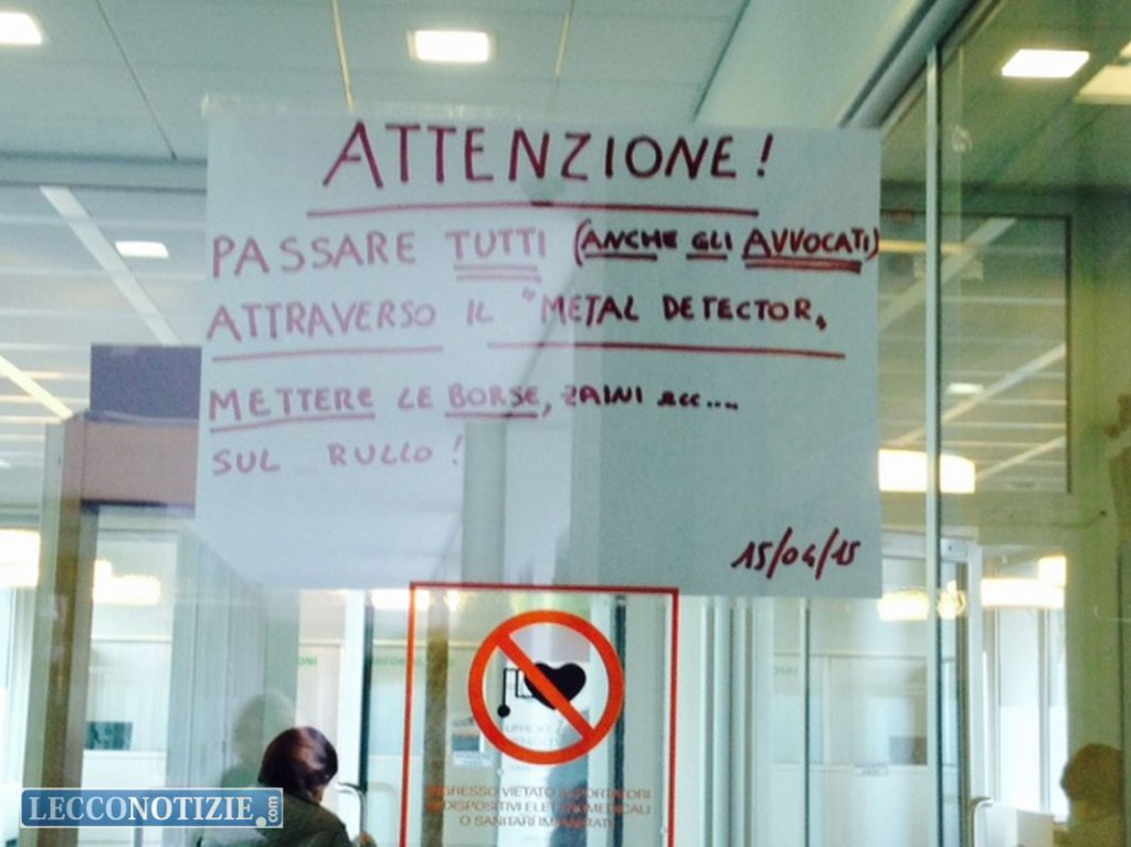 LECCO – Dopo i fatti accaduti nel Tribunale di Milano lo scorso giovedì, dove la sparatoria ad opera di Claudio Giardiello ha causato la morte di quattro persone (vedi articolo), anche il Palazzo di Giustizia lecchese ha aumentato le misure di sicurezza, estese ora a tutti i “frequentatori” del Tribunale.