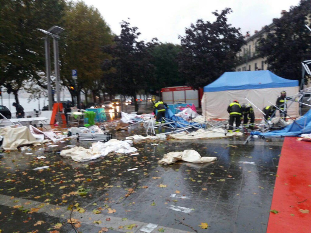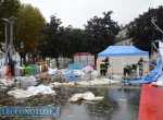 Più sfortunata la proprietaria del gazebo distrutto, che  non era in piazza nel momento in cui pioggia e vento imperversavano: quando è tornata ha trovato tutto per aria. La manifestazione è stata annullata.
