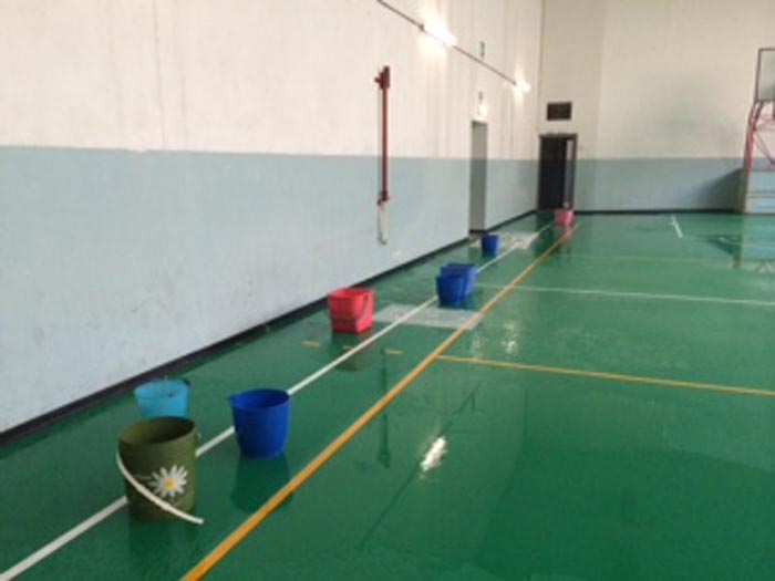 Così diverse pozzanghere si sono formate all’interno dell’istituto di via Zelioli e nella palestra. Per “tamponare” l’emergenza sono stati posizionati dei secchi qua e la per la scuola.