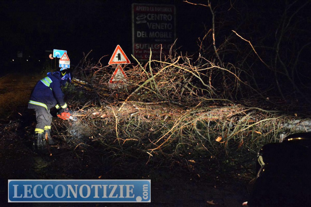 Diverse le chiamate giunte ai Vigili del Fuoco, costretti ad altrettanti interventi per tutta la serata. Sulla salita di Bevera, una squadra giunta da Merate ha dovuto segare un albero caduto a lato della strada, andando ad invadere la corsia di marcia in direzione di Barzanò. Armati di motosega, e di pazienza, i pompieri hanno provveduto a rimuovere tronco e rami che, con la loro presenza, avrebbero creato disagi e pericolo al passaggio delle automobili.