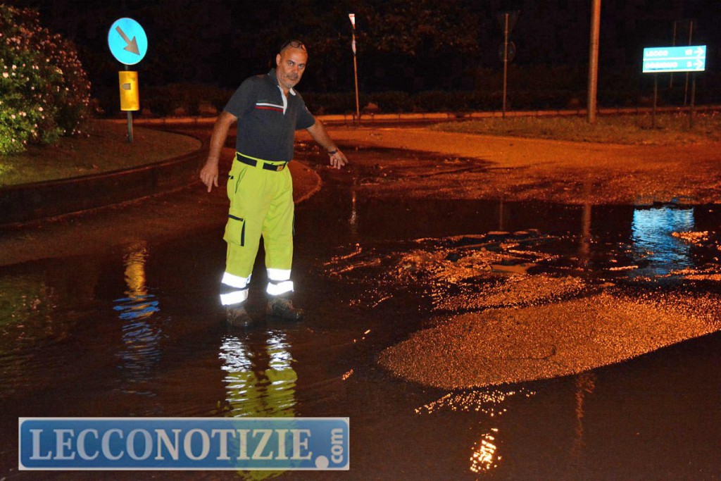 A Dolzago le tubature della fognatura hanno ceduto nei pressi della rotatoria all’incrocio tra La Santa e la provinciale per Sirone, sollevando l’asfalto e allagando la strada; la Protezione Civile ha presidiato in serata il rondò.
