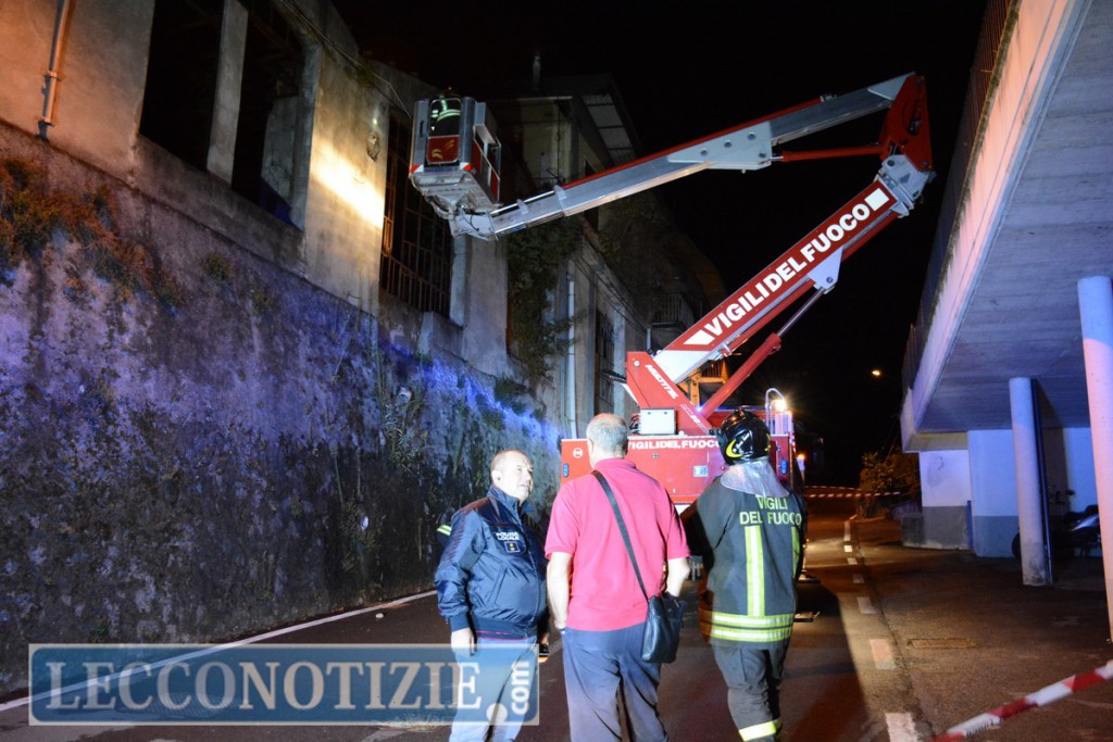 Due squadre dei Vigili del Fuoco sono dovute accorrere in via Scaletta a Galbiate, avvisati dai residenti della caduta di alcuni calcinacci da un vecchio stabile di un’ex fabbrica, rimasta in disuso dopo che nel 1995 era stata distrutta da un incendio.    Dopo le prime verifiche ad opera dei volontari di Valmadrera, è giunto un’equipaggio dei pompieri di Erba con un’autoscala per verificare che non vi fosse altro materiale instabile.