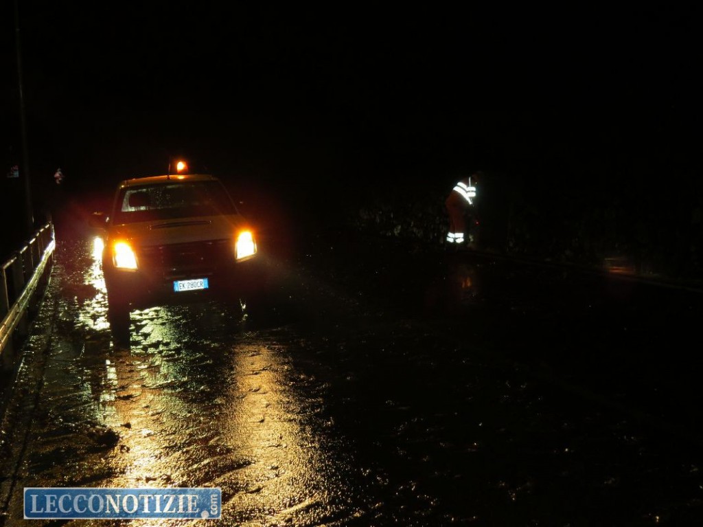 Chiusa anche la Strada Statale 36 Dir (nuova Lecco – Ballabio), ma solo in discesa a causa dell’allagamento della corsia in alcuni punti, mentre al momento resta aperta per chi da Lecco deve salire a Ballabio. Sempre in Valsassina, chiusa anche la Sp 63 a Parlasco in località Villette a causa di uno smottamento; smottamento che si è registrato anche nella frazione Narro di Casargo, in Alta Valsassina, mentre è costantemente monitorata, ormai da qualche giorno, la frana di Bindo di Cotenova.
