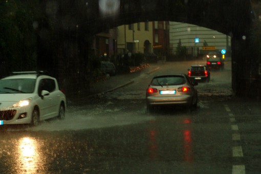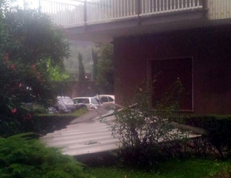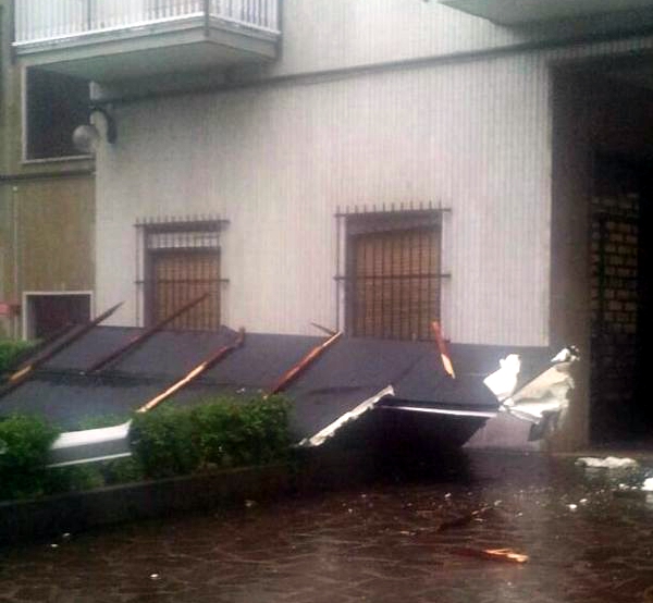 Un nubrifragio di mezz’ora o poco meno ha di nuovo messo paura, con strade allagate che si sono trasformate in veri e propri fiumi, disagi per la circolazione, ma anche oggetti che hanno preso il volo a causa del forte vento. E così è stata chiuso temporaneamente il sottopasso ferroviario di via Amendola per consentire il defluire dell’acqua che aveva creato una vera e propria piscina, mentre in corso Martiri un pezzo di tetto è stato divelto dal vento ed è precipitato in un giardino interno (vedi articolo)