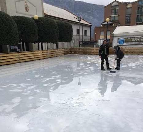 “La neve calpestata si è ghiacciata – spiega il sindaco Riccardo Fasoli – e si è rovinato tutto il ghiaccio”. I lavori di sistemazione sono già partiti e “domani – rassicura il sindaco – sarà tutto sistemato…”