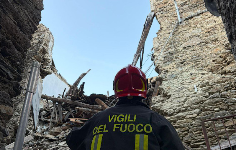 Crolla porzione di edificio nel nucleo storico di Vestreno: sul posto i Vigili del Fuoco