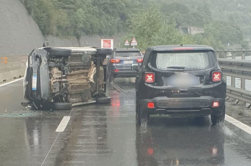 Incidente in SS36 (Sud), auto si ribalta poco dopo lo svincolo di Abbadia
