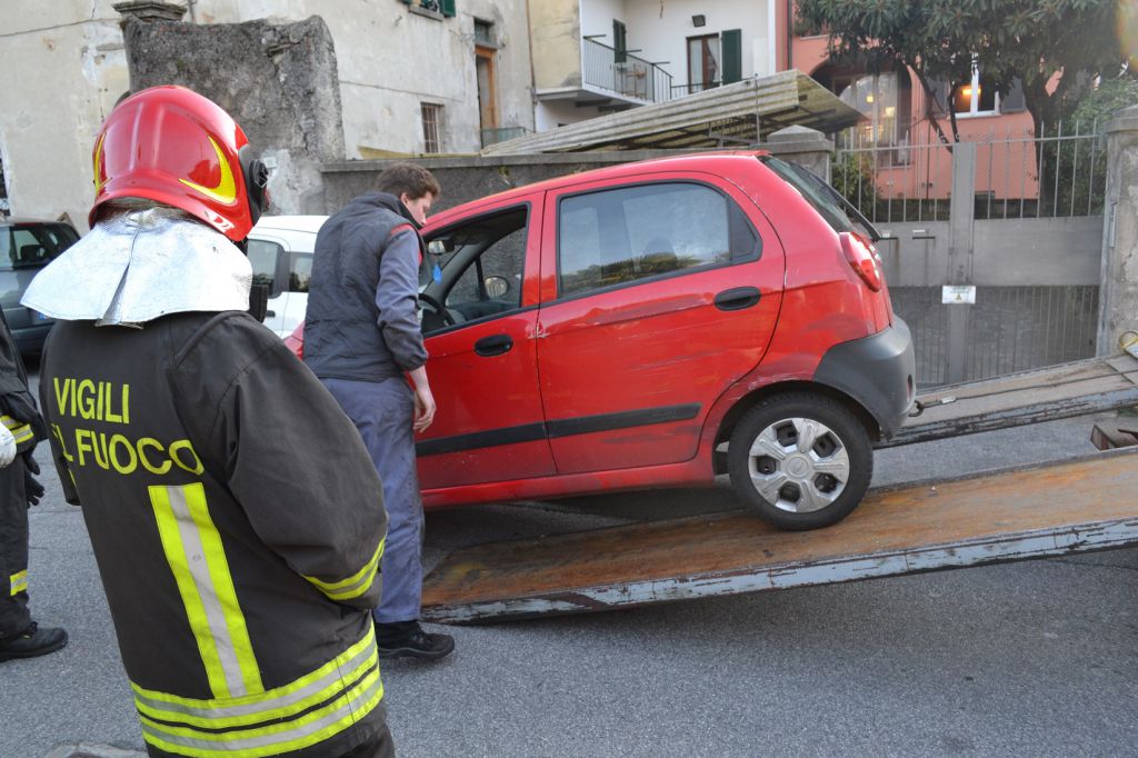 Al volante della vettura vi era una donna che stava raggiungendo la propria abitazione, poco più avanti rispetto al punto in cui si è verificato il sinistro. Per cause in corso di accertamento, la conducente avrebbe perso il controllo dell’auto – una Chevrolet Matiz rossa – andando dapprima a urtare una Fiat Panda bianca parcheggiata a bordo della strada e quindi adagiandosi sulla fiancata sinistra, contro il marciapiede opposto.