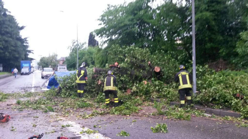 MERATE – Si è sfiorato il dramma a Merate, giovedì mattina: un albero è piombato sulla strada prendendo in pieno due automobili che stavano transitando.