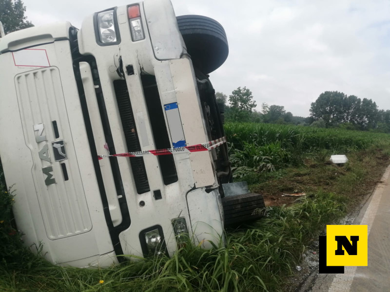 L’incidente è avvenuto questa notte, poco prima delle 2, con il mezzo pesante uscito di strada per poi ribaltarsi su un fianco a bordo carreggiata.