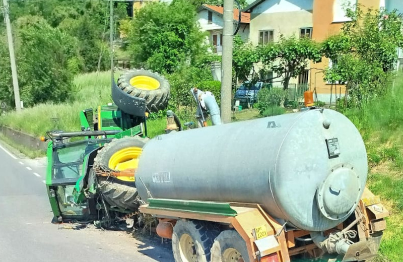 Secondo quanto raccolto sul posto, il mezzo agricolo avrebbe improvvisamente perso aderenza – o il controllo – finendo nel fossato erboso che costeggia la carreggiata. Un’uscita di strada che, vista la stazza del trattore e del rimorchio, avrebbe potuto avere esiti ben peggiori.