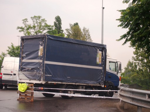 L’incidente, che fortunatamente non ha fatto registrare feriti e non ha coinvolto altri mezzi, è successo intorno alle 17.30. Il mezzo si è praticamente appoggiato ad un guard rail in piena rotonda così da ostruire il passaggio delle vetture praticamente in tutte le direzioni.