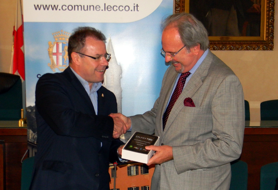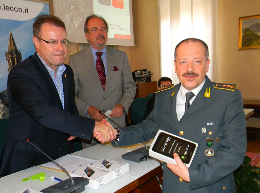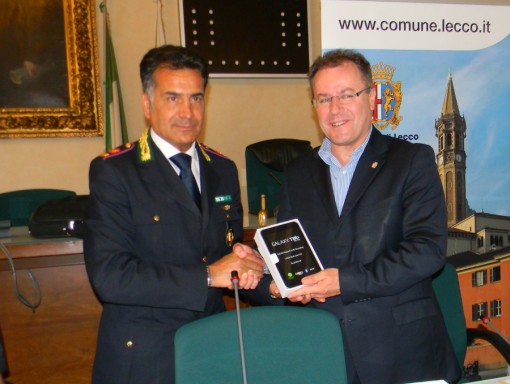 LECCO – Da oggi, nella fondina degli agenti di Polizia Locale e delle Forze dell’Ordine accanto a pistola e manette ci sarà un tablet. Già, avete letto bene, un tablet. Si tratta di un esperimento pilota, primo in italia, che ha l’obiettivo di coniugare sicurezza e tecnologia. Un progetto fortemente voluto dall’Amministrazione Brivio in collaborazione con la ditta Lutech di Cologno Monzese (Milano) che ha richiesto un investimento di 10mila euro. 11 i tablet consegnati questa mattina, 7 al Comando di Polizia Locale di Lecco e 4 alle Forze dell’Ordine.