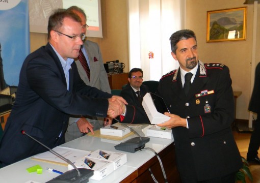 Quindi si è passati alla consegna ufficiale dei tablet, al Questore Bocci, alla Procura della Repubblica, ai Carabinieri e alla Guardia di Finanza presente con il Comandante provinciale Ettore Ciccone. Presente alla consegna anche Confindustruia con Cinzia Cogliati presidente Pmi.