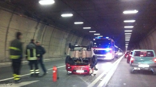Incidente in galleria, auto si ribalta sulla Lecco Ballabio