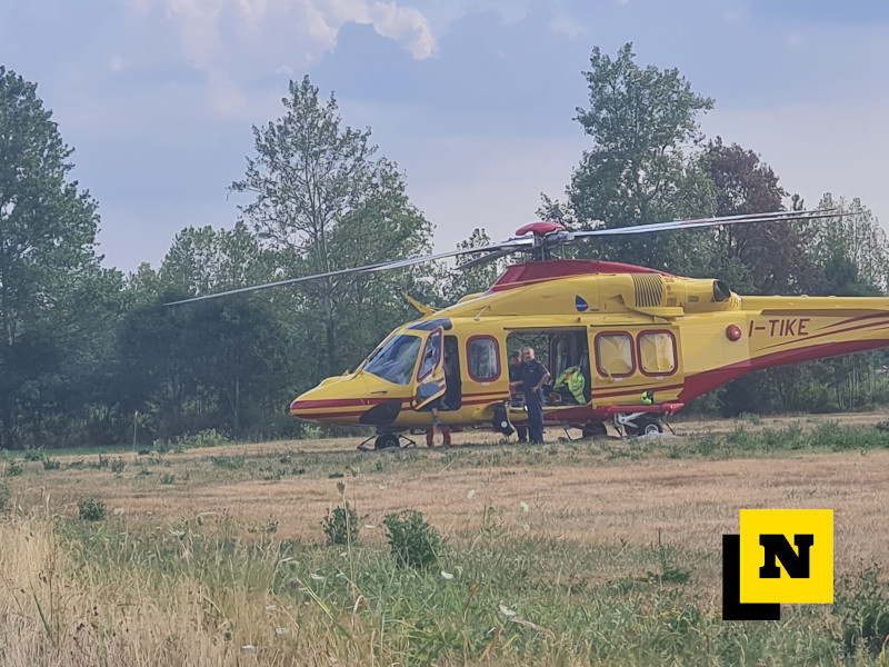 L’elisoccorso giunto da Como, atterrato nei pressi dell’azienda