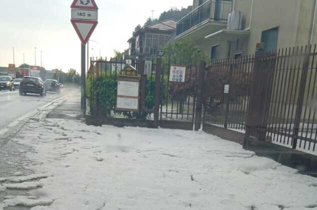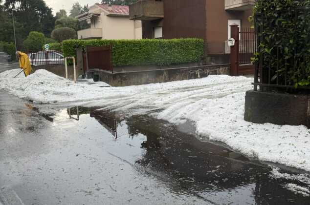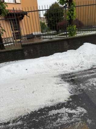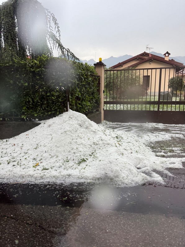 OLGINATE – Intorno alle ore 17 di oggi, mercoledì 21 maggio, una forte grandinata si è scatenata nella zona tra Olginate, Valgreghentino, Airuno, Brivio e Cisano. Un evento atmosferico particolarmente intenso, che ha imbiancato le strade come fosse una nevicata. Chicchi di grandine sono arrivati anche nella zona di Calolzio e Monte Marenzo.