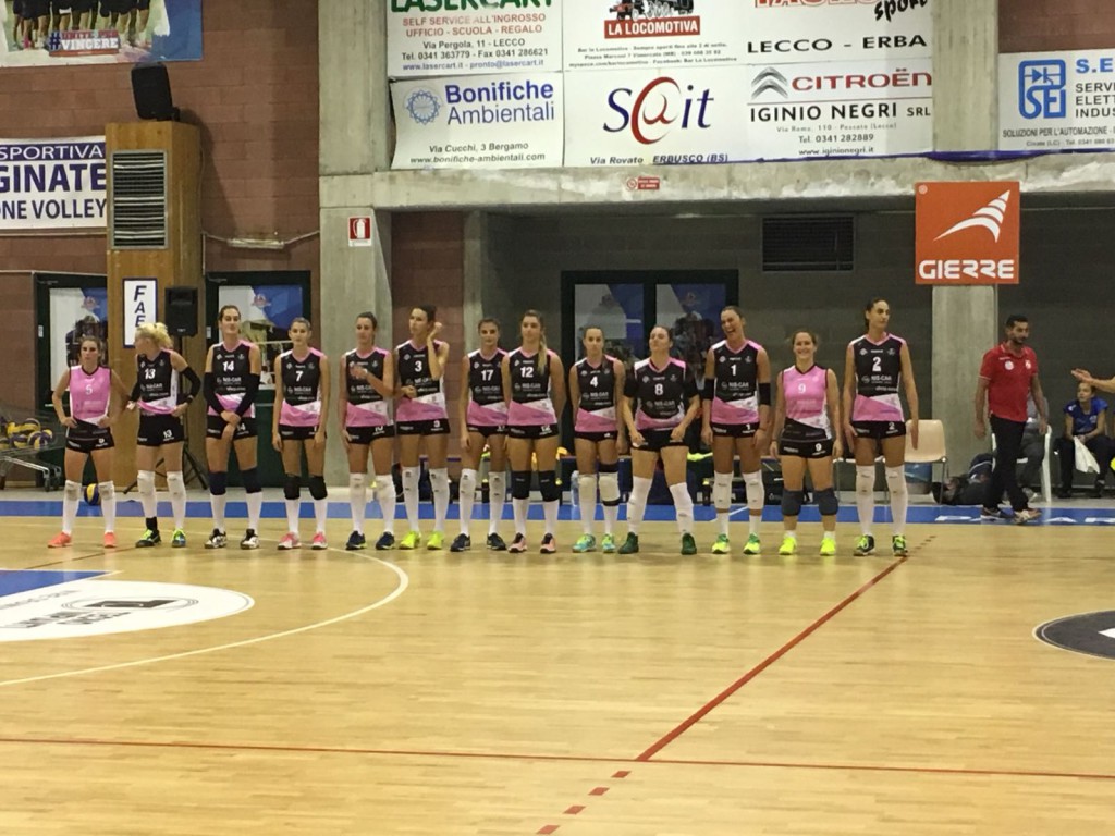 La squadra di casa si mostra ora in tutto il suo potenziale per accogliere i numerosi tifosi accorsi al palazzetto di Olginate: coach Tirelli e Rebecca possono infatti contare su tutte le giocatrici in rosa. La formazione schierata nel primo set vede in campo Colombo in palleggio, Giudici opposta, Rinaldi e Rainoldi in banda, Cattaneo e Tresoldi al centro, Francesca Comi Libero.