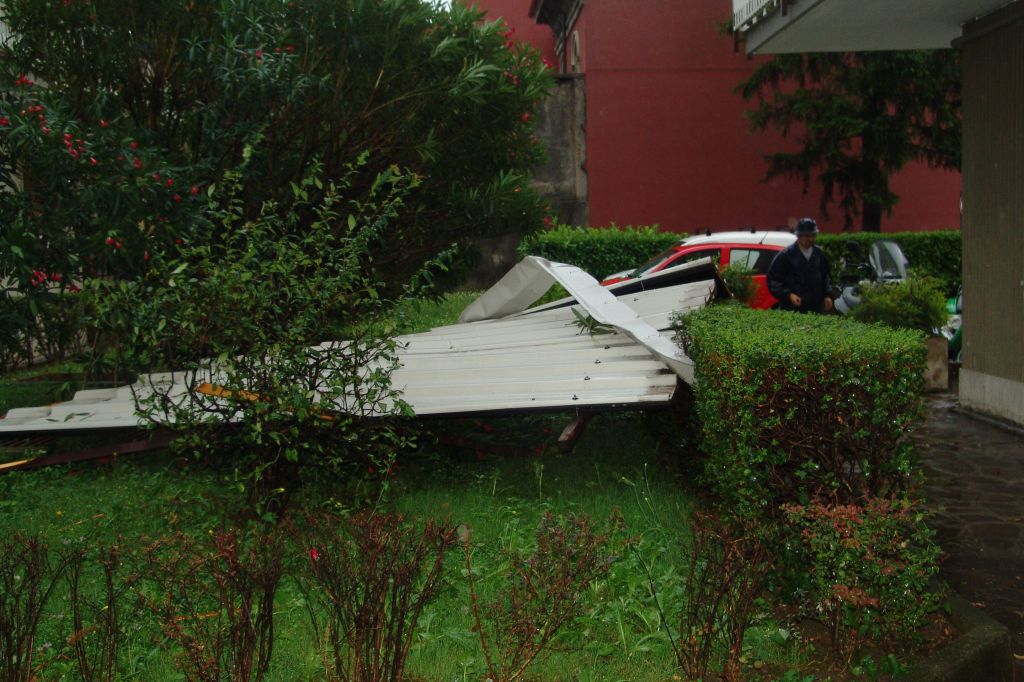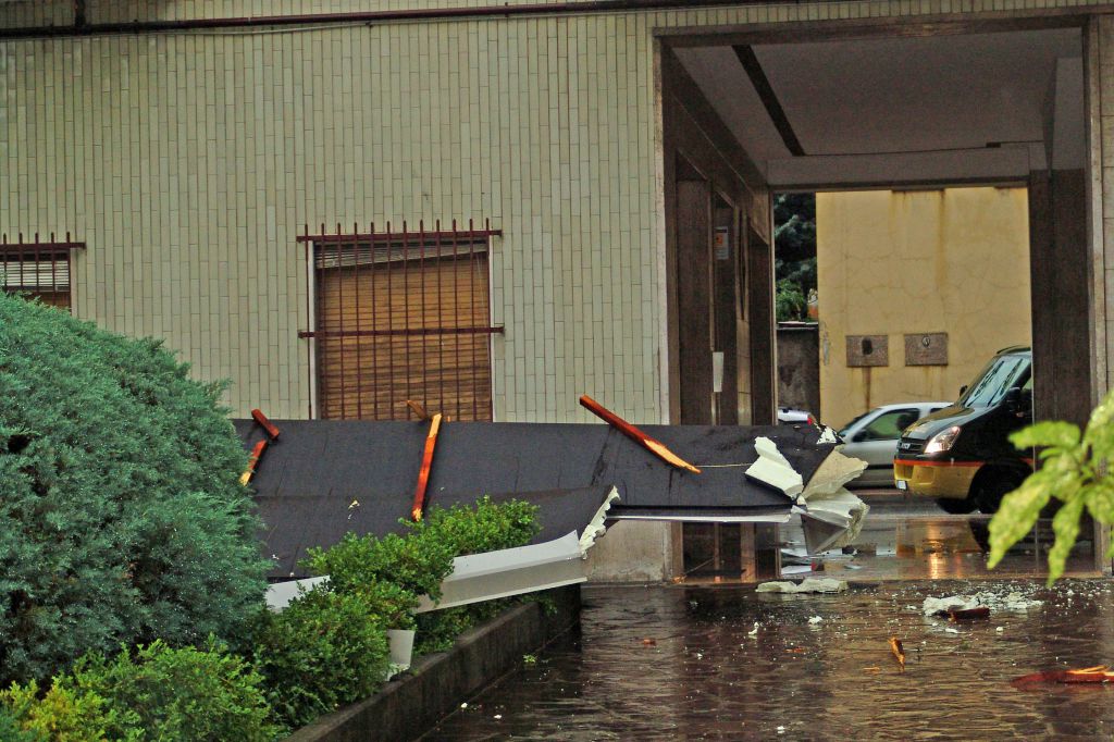 Sembrava che i problemi maggiori il maltempo li avesse creati in mattinata, invece la paura a Pescarenico è arrivata intorno alle 16, quando le raffiche di vento hanno sollevato il tetto del condominio Isola, situato proprio di fronte all’isola Viscontea, e lo ha scaraventato cento metri più in là, nella corte del condominio Martiri.