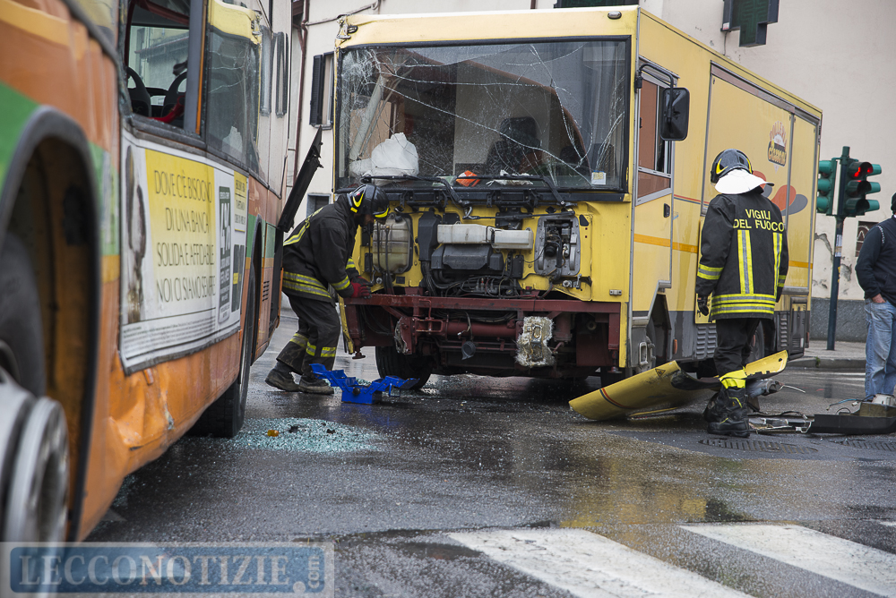 Il tutto è avvenuto alle 14.50 circa, quando il furgone proveniente da Valmadrera (in direzione Parè) giunto all’incrocio ha svoltato a sinistra per imboccare il viale Promessi Sposi e procedere verso la chiesa ma proprio in quel momento nel bel mezzo dell’incrocio stava transitando un autobus diretto dalla stazione di Valmadrera verso la chiesa.