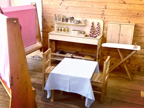 Il gioco immaginativo ha in asilo moltissima importanza: i giocattoli sono semplici, spesso fatti a mano, affinché la fantasia del bambino possa completare in libertà ciò che è solo abbozzato.