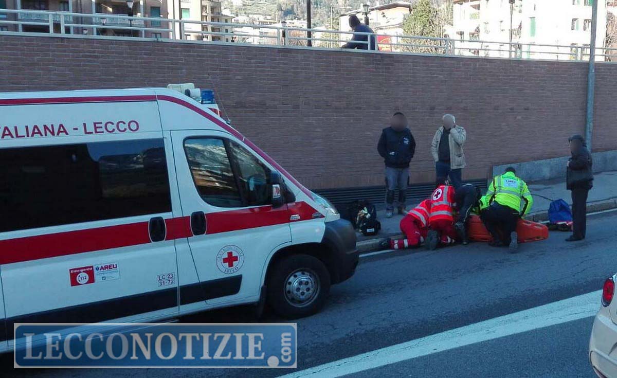 LECCO – Croce Rossa e automedica del 118 in Corso Promessi Sposi per soccorrere un uomo investito da un veicolo mentre attraversava la strada.