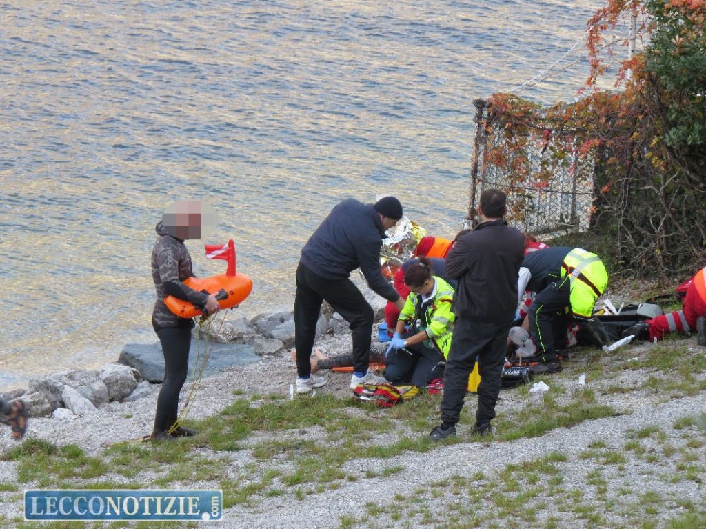 Immediatamente è giunta un’ambulanza e l’auto medica, mentre il ragazzo giaceva sulla spiaggia antistante il lo specchio d’acqua in cui stava effettuando l’immersione. Il personale medico ha iniziato un lungo intervento di soccorso intubando il ragazzo che sembrerebbe aver bevuto molta acqua, quindi una volta stabilizzato è stato trasportato all’ospedale di Lecco.