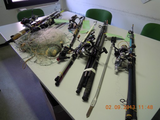 A seguito dei controlli sono stati redatti 8 verbali amministrativi a soggetti di nazionalità rumena e moldava e sequestrate 14 canne da pesca munite di mulinello.