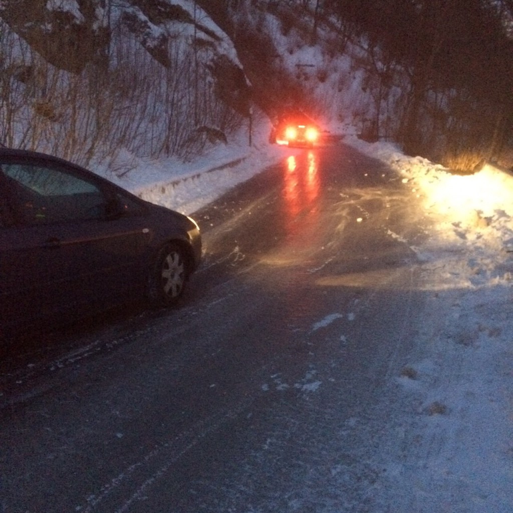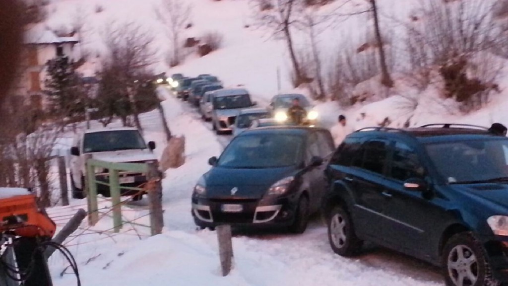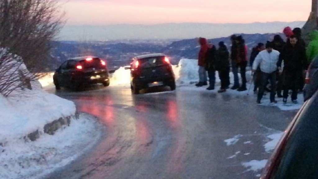 Una situazione che è andata peggiorando in quando un paio di auto sono uscite fuori strada mentre altri non hanno osato avventurarsi sulla strada ghiacciata con inevitabili incolonnamenti a partire dal tratto ghiacciato fin su al piazzale.