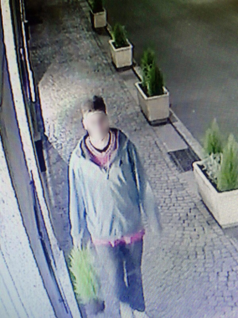 Il ragazzo, ripreso dal sistema di videosorveglianza di un esercizio commerciale, si mostra soddisfatto dopo aver sradicato la piantina da un vaso all’esterno di un negozio del centro Lecco.