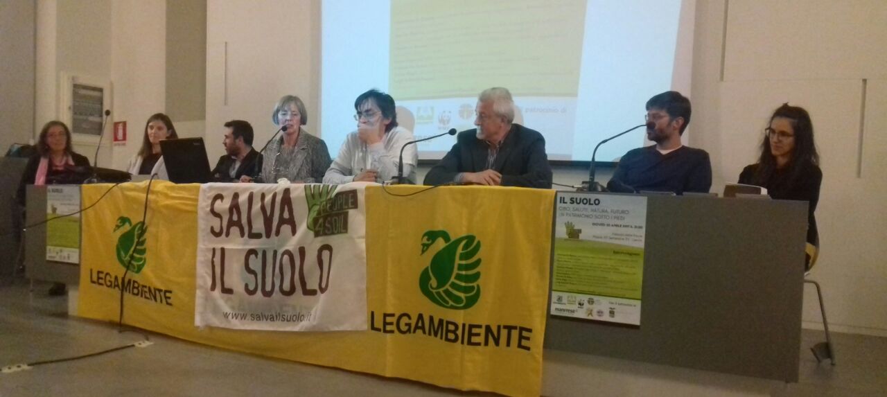 Damiano di Simine, responsabile suolo di Legambiente, che ha illustrato la petizione #People4Soil, un’iniziativa dei cittadini europei presentata da un comitato e sostenuta da oltre 400 associazioni per chiedere all’Unione Europea norme vincolanti, ha richiamato l’attenzione sul suolo come risorsa necessaria alla vita ma anche limitata, una pellicola che avvolge le terre fertili per uno spessore che in genere non supera le poche decine di cm.