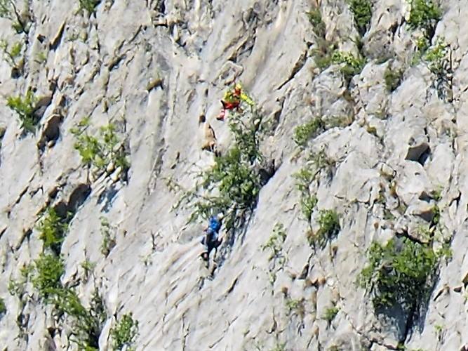 I due escursionisti stavano salendo la Via Tutta di Traverso, sulla parete del San Martino, quando sono stati colpiti da alcuni massi. Uno di loro si sarebbe ferito ad un braccio.