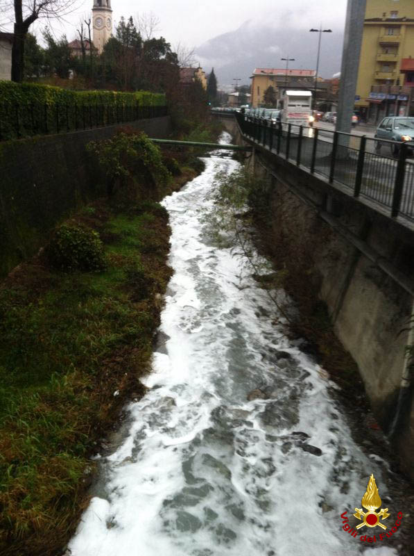 LECCO – La formazione di schiuma in un corso d’acqua non è mai un buon segno e chissà cosa avranno pensato gli abitanti di Belledo che, nel pomeriggio di sabato, si sono visti letteralmente “imbiancare” il torrente Bione.