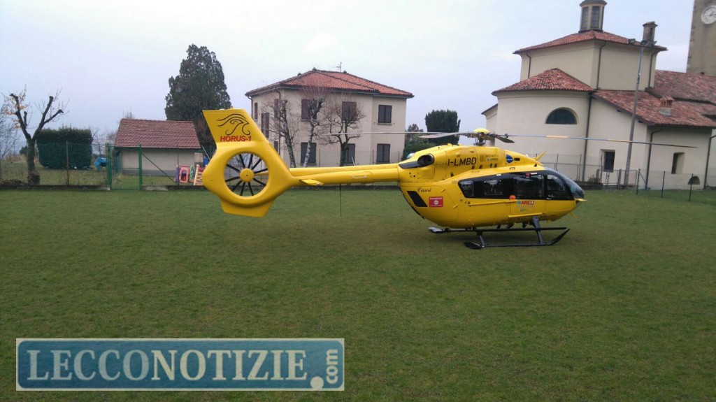 Anche l’elisoccorso decollato da Bergamo è stato chiamato ad intervenire insieme ai Volontari del Soccorso di Calolzio ed è atterrato nel campo da calcio dell’oratorio di Lorentino.