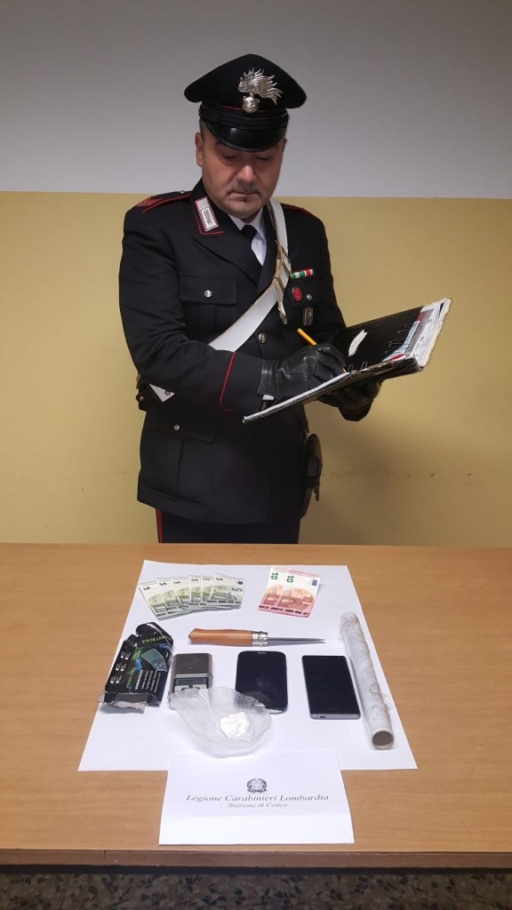 L’attività dei militari, condotta con servizi di osservazione, controllo e pedinamento di giovani dediti al consumo di sostanze stupefacenti nel territorio di Dervio ha consentito di individuare e fermare lo spacciatore. L’operazione ha portato al sequestro di 18 grammi di cocaina, due telefoni cellulari utilizzati per i contatti con i clienti, un coltello a serramanico, denaro contante, un bilancino di precisione e altro materiale utile per il confezionamento delle singole dosi.