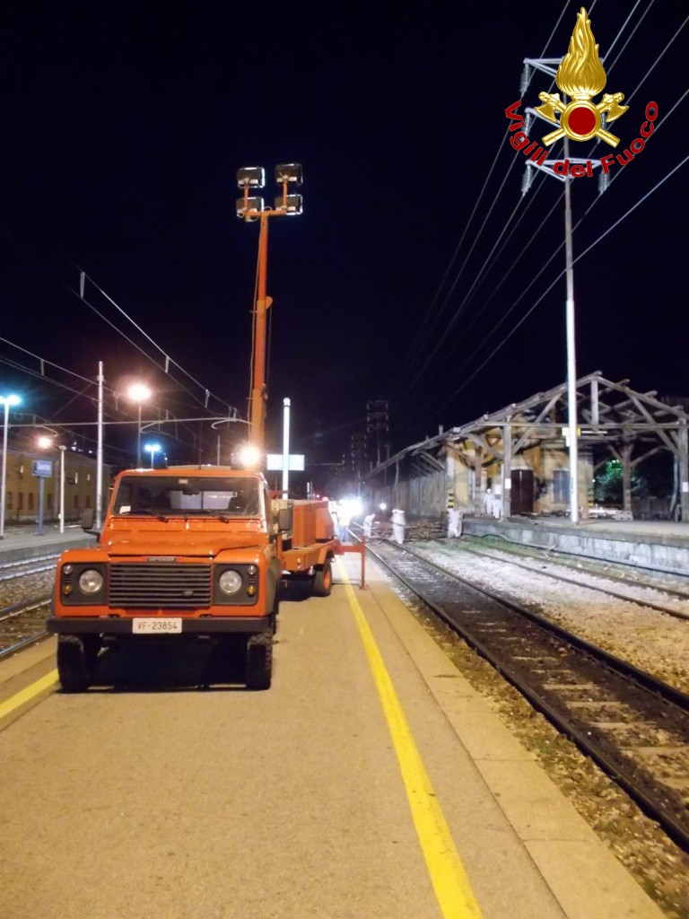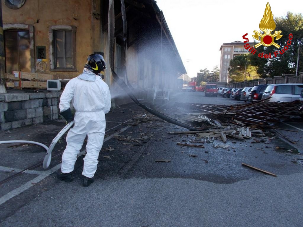 A rendere tutto più difficile la presenza dell’eternit che rivestiva la struttura e che ha costretto i Vigili del Fuoco e il personale di RFI a proteggersi con delle mascherine. Sul posto è giunto sul posto anche un mezzo speciale dei Vigili del fuoco, il carro NBCR, particolarmente attrezzato per interventi coinvolgenti sostanze pericolose. Sul posto giungeva anche il Comandante provinciale.