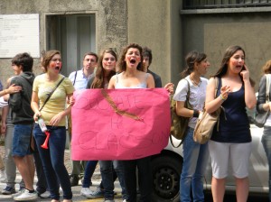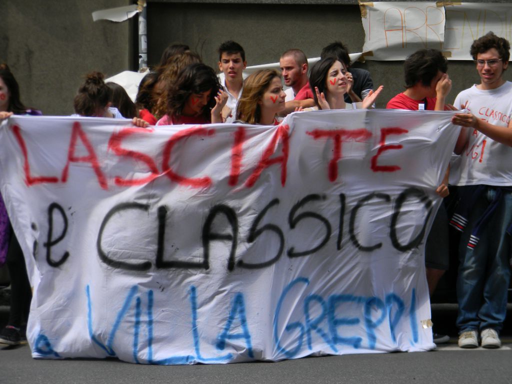 Al grido di “noi restiamo a Villa Greppi” ed “Esci fuori provveditore” gli studenti del Liceo Classico dell’Istituto di Monticello Brianza questa mattina hanno protestato sotto le finestre del provveditorato di Lecco in via Marco d’Oggiono per i tagli previsti che determineranno l’eliminazione del liceo.