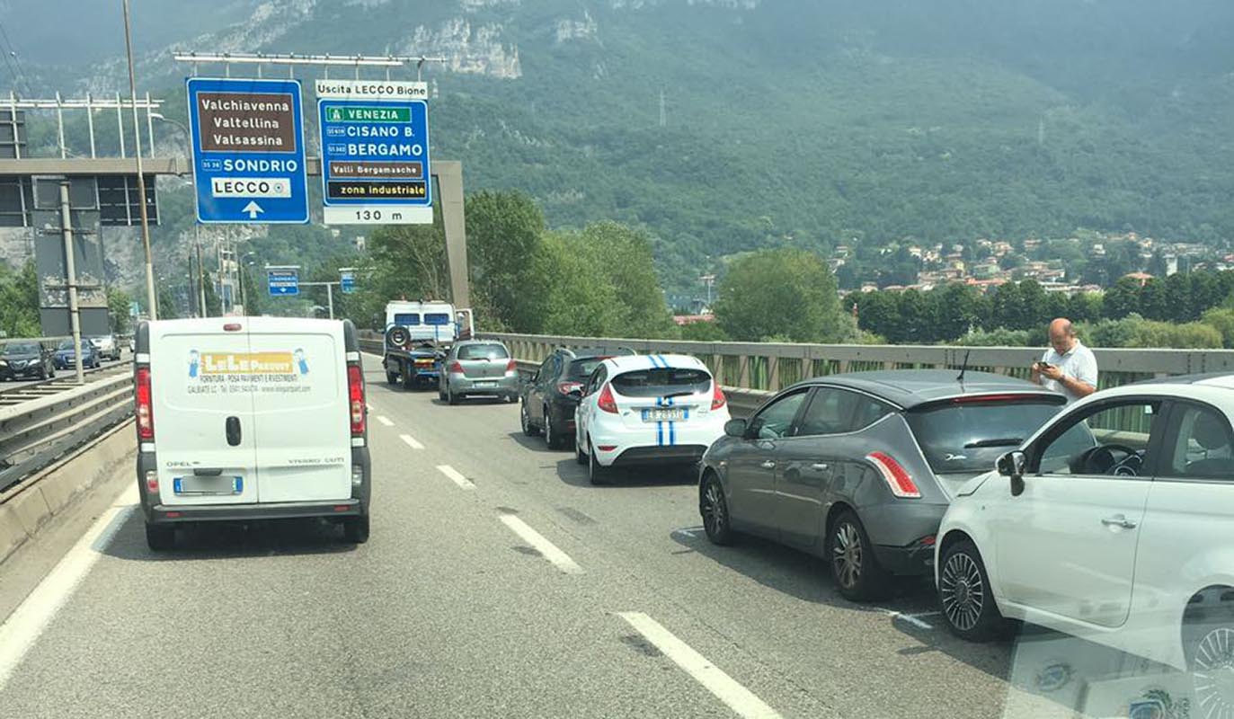 LECCO – Avrebbe coinvolto ben cinque veicoli il tamponamento a catena avvenuto poco dopo le 14.30 di giovedì sul Terzo Ponte di Lecco, in prossimità dell’uscita per il Bione, in direzione nord.