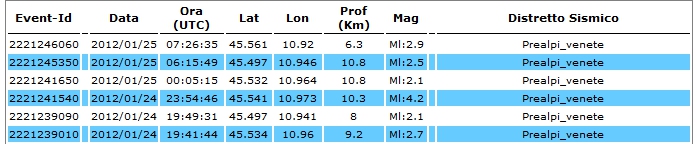 Escludendo l’ultima scossa percipita pochi minuti fa, sono state finora sei le scosse rilevate dall’Istituto Nazionale di Geofisica e di Vulcanologia di Roma nella zona delle Prealpi Venete, il primo alle 19.41, quindi alle 19.49, 23.54, 24.05, 6.15 e alle 7.26.