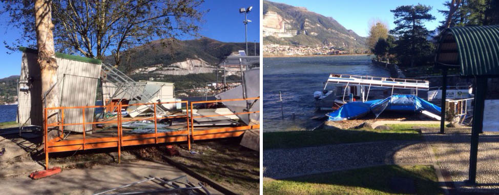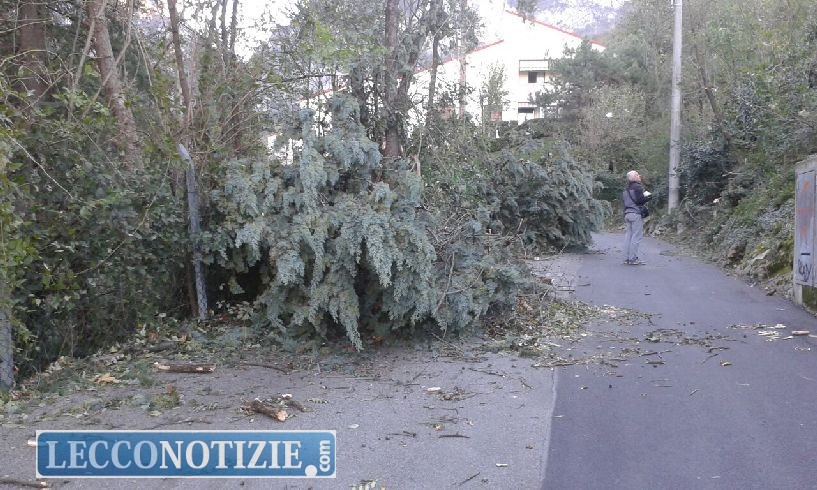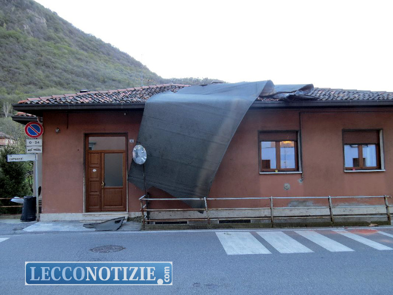 In città, i danni maggiori si sono registrati a Laorca dove il telo bituminoso che copre una parte del tetto dell’oratorio San Giuseppe è stato sollevato dalla forza del vento ed è volato ad una trentina di metri di distanza, finendo su una casa di Corso Monte Ortigara, sulla vecchia Lecco – Ballabio. Fortunatamente non si sono verificati feriti ma è stato alto il rischio che la copertura potesse travolgere persone o automobili di passaggio.