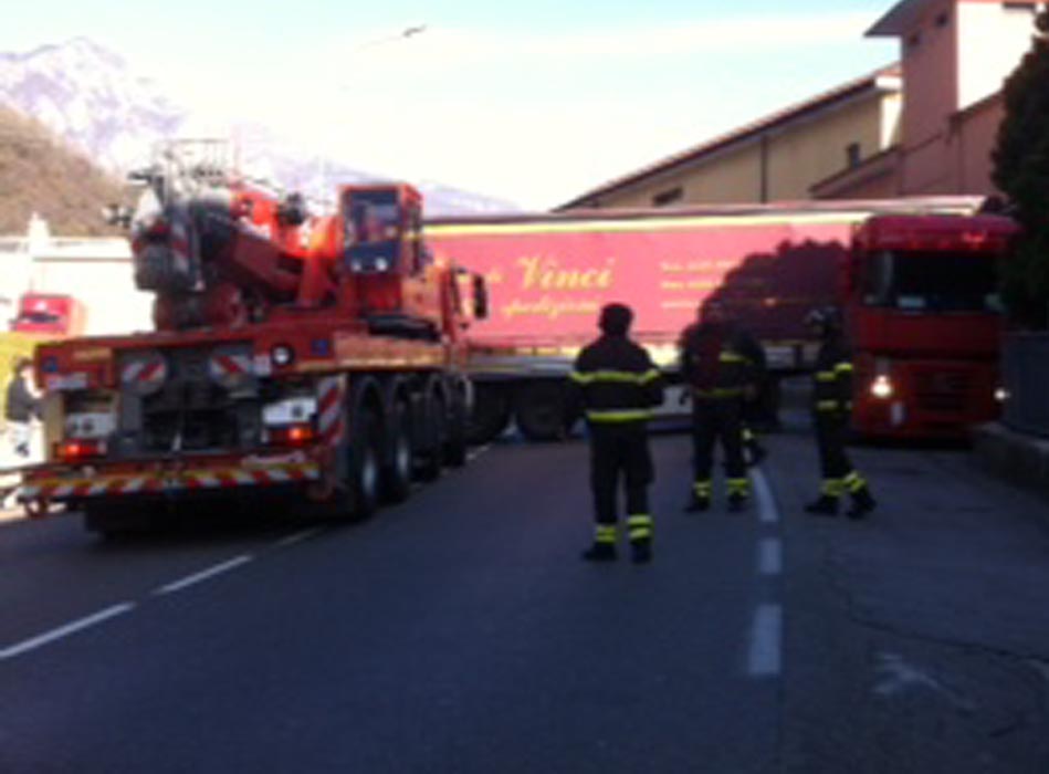 Il fatto è accaduto intorno alle 11.30 di martedì ed è stato necessario l’intervento dei Vigili del Fuoco con l’autogru per cercare di disincastrare il grosso mezzo pesante. Il traffico è rimasto bloccato fino alle 12.30 circa.