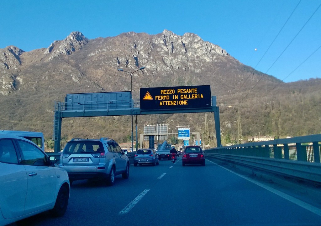 LECCO- Code venerdì mattina intorno alle 7.30  a causa di un camion che trasportava ponteggi e materiali di cantiere che si é guastato nella galleria del barro e si é fermato in carreggiata.