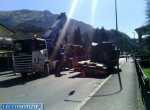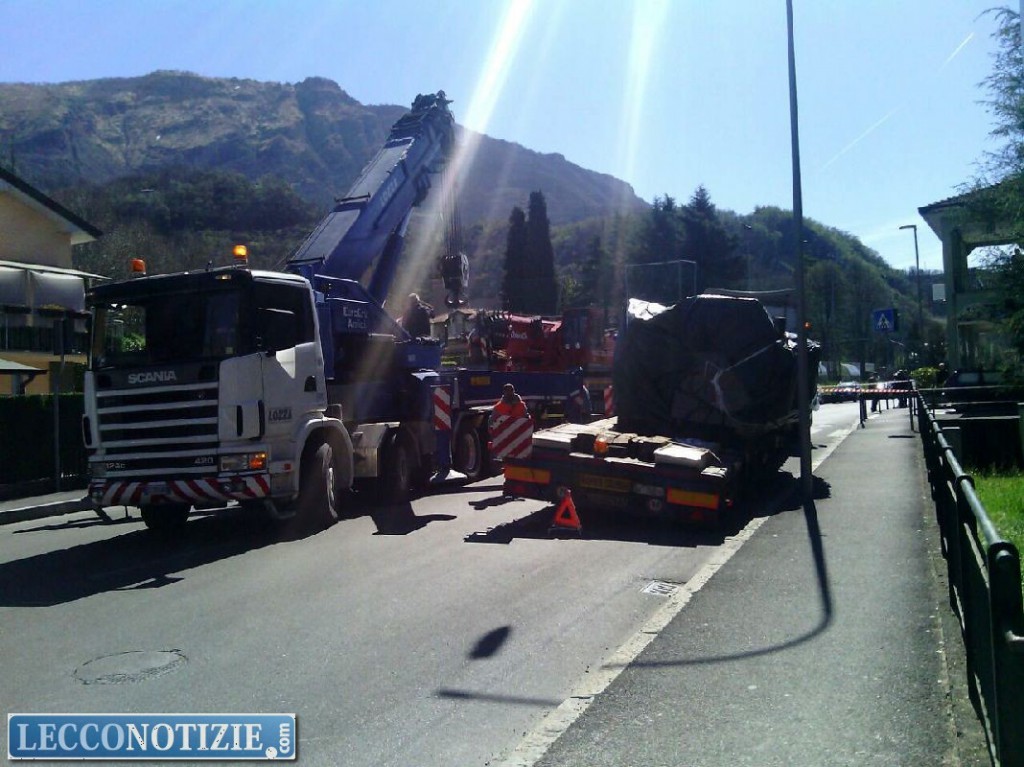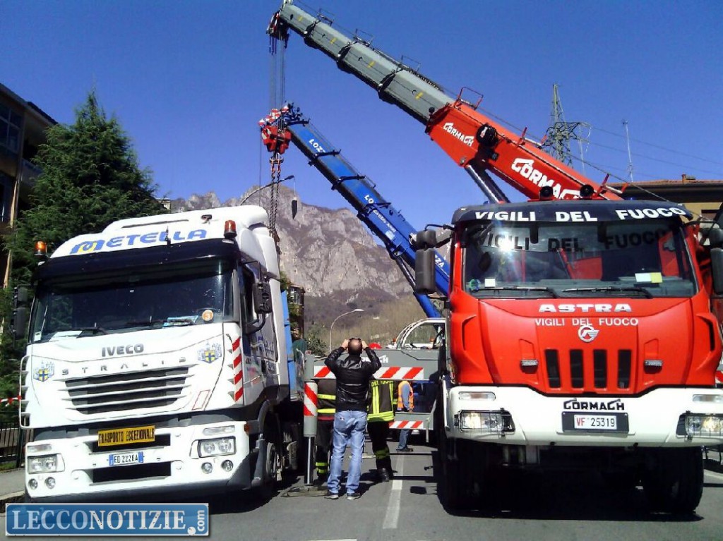 I Vigili del Fuoco sono intervenuti con una gru  per riuscire a sollevare e riportare il carico sul rimorchio. Alle operazioni partecipa anche la gru di un’azienda privata. Sul posto c’è anche la Polizia Locale che sta deviando il traffico di entrambe le corsie di marcia attesa che la situazione si risolva.