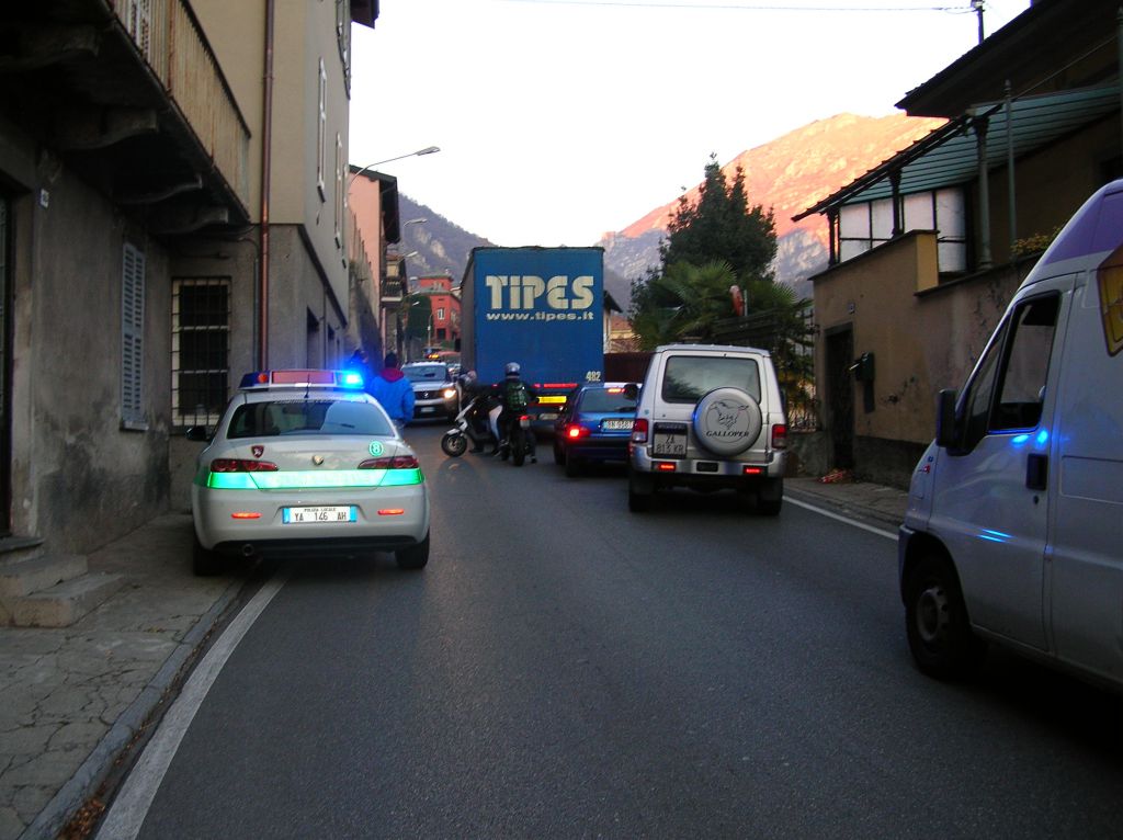 Risultato, traffico bloccato per quasi un’ora e mezza con la Polizia Locale intervenuta sul posto nel tentativo di far passare “goccia a goccia” almeno la automobili, che, sfirando da un lato il bisonte della strada e dall’altro il muro di contenimento, scivolano via. Impossibile invece per chi è alla guida di furgoni, bus e camincini solamente il pensare di fare la stessa cosa. La coda si allunga, la circolazione va in tilt e molti di coloro che scendo da Ballabio verso Lecco decidono di fare dietro front per risalire in valle e ridiscendere dalla SS36 Dir.