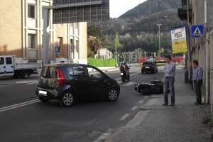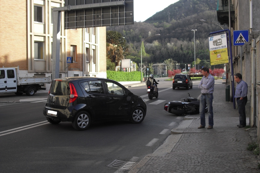 LECCO – Dopo quelli di via Ugo Foscolo e via Fiandra, altri tre incidenti si sono registrati in città nel pomeriggio, tutti e tre fortunatamente non gravi. Il primo, è avvenuto poco prima delle 17 in via Leonardo da Vinci (al quale si riferiscono le immagini), quando uno scooter che pare stesse procedendo sulla destra è stato urtato da un’Opel Agila mentre stava svoltando per acccedere all’interno di un cortile. L’impatto non è stato violento, anche se il motocislista, caduto a