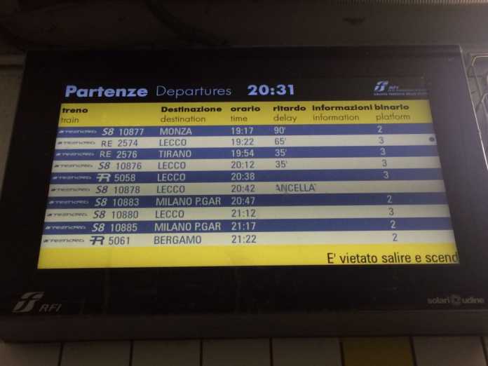 Quasi due ore il ritardo per il convoglio partito da Milano alle 17.20, oltre un’ora quella accumulata dal successivo (18.20 da Milano Centrale), mentre il 19.20 è partito con 30 minuti di ritardo.