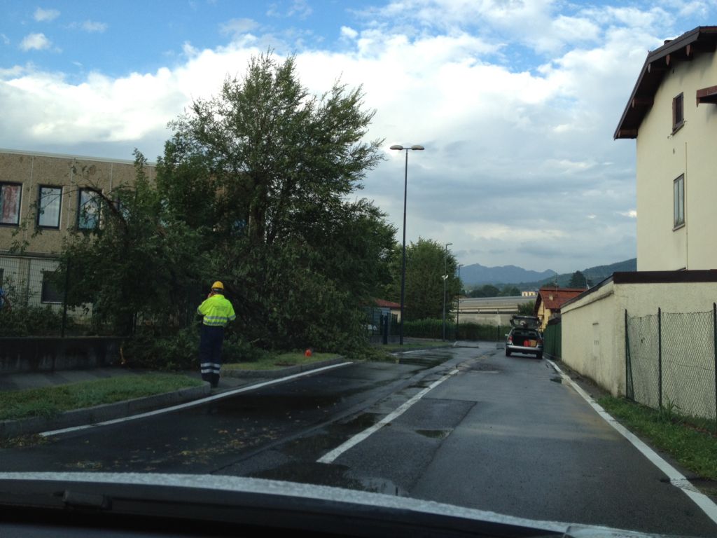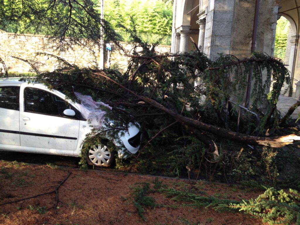 BRIANZA – Una tempesta devastante si è abbattuta sulla provincia di Lecco, nel tardo pomeriggio di lunedì, colpendo con particolare violenza l’area oggionese. E’ qui che si sono verificati i danni maggiori: allagamenti, alberi sradicati, segnaletica stradale rovesciata sulla carreggiata; nei pressi del cimitero di Oggiono un pino candendo ha centrato in pieno un’automobile in sosta e le forte raffiche di vento hanno divelto alcuni gazebi dell’area fiere, vicina alla stazione dei treni.