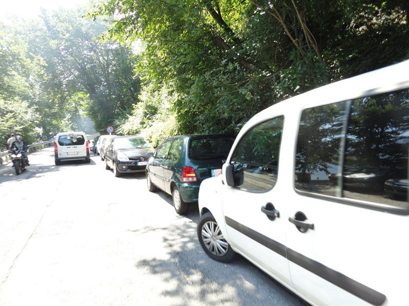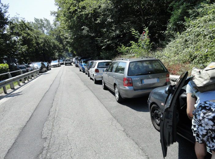 Ma non finisce qui. La Statale Lariana, famosa per il fatto che si tratta di una strada stretta e tortuosa, quindi di difficoltosa percorrenza, risulta ancor più disagiata nel wekend, quando “centinaia di auto vengono parcheggiate selvaggiamente dentro la carreggiata, restringendola ulteriormente, in prossimità di curve, quindi rendendo la viabilità da lenta e difficoltosa a pericolosa”.