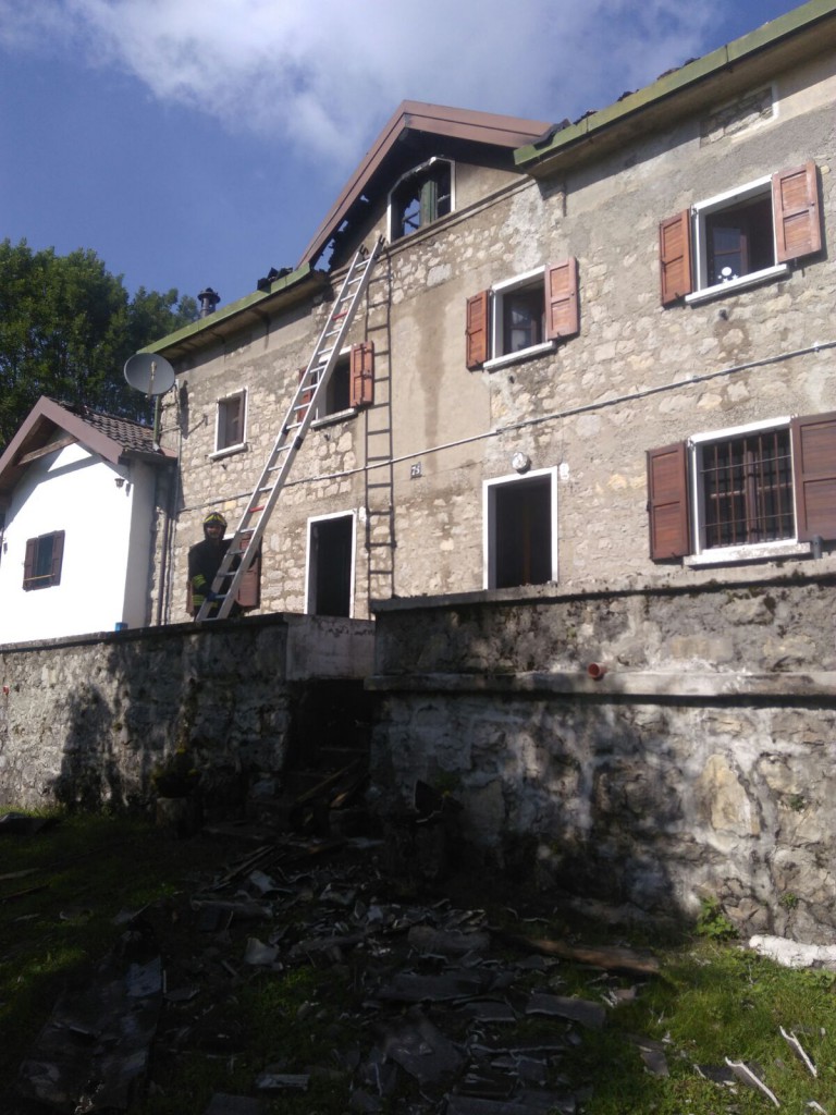 TORRE DE BUSI – Un tetto distrutto in parte e i locali sottostanti dichiarati inagibili, in Valcava, dove un incendio nel tardo pomeriggio di sabato ha interessato una casa in via Funivia a Torre de Busi.