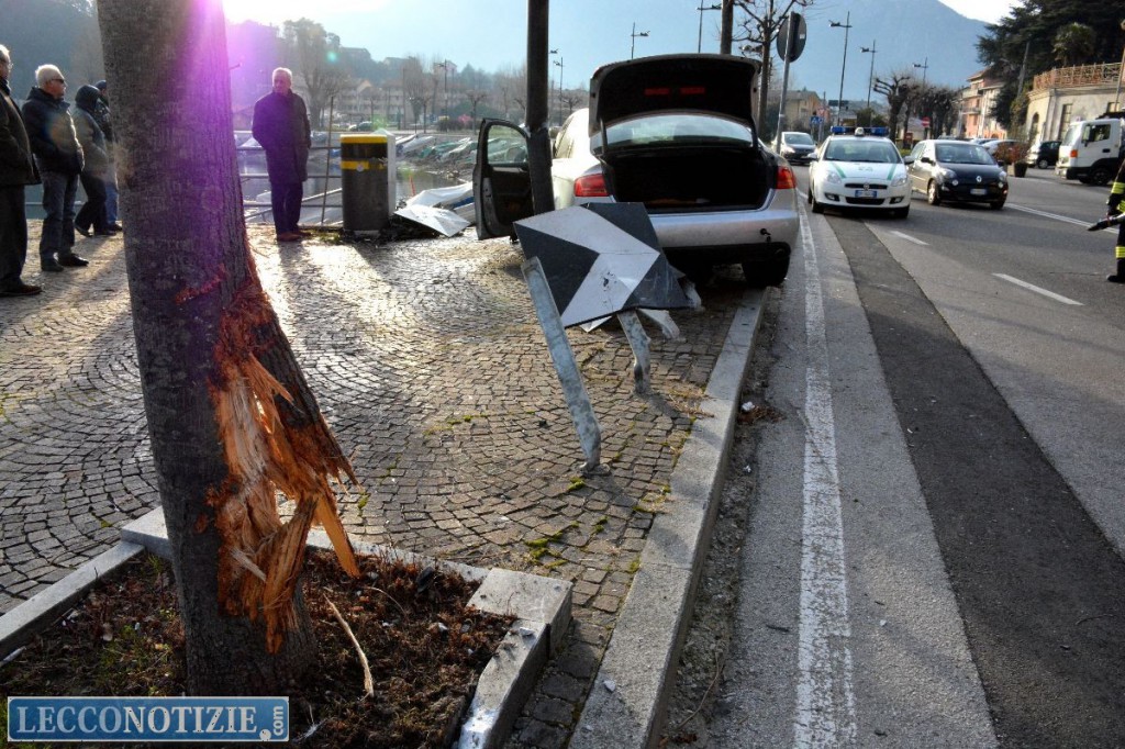 VALMADRERA – Momenti di apprensione venerdì mattina a Valmadrera all’uscita della galleria di Parè, quando un’Audi A6 è finita fuori strada centrando un alberto situato a bordo carreggiata e diverse insegne stradali, per arrestare la corsa sul marciapiede.